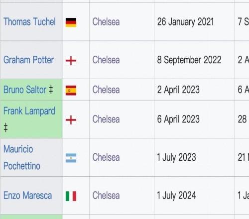 自21年欧冠夺冠以来,罗塞尼尔是切尔西5年来任命的第5位主帅