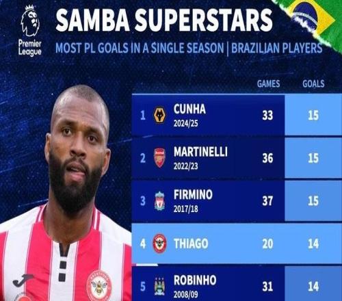 已进14球仅差2球,伊戈尔有望打破巴西球员英超单赛季进球纪录